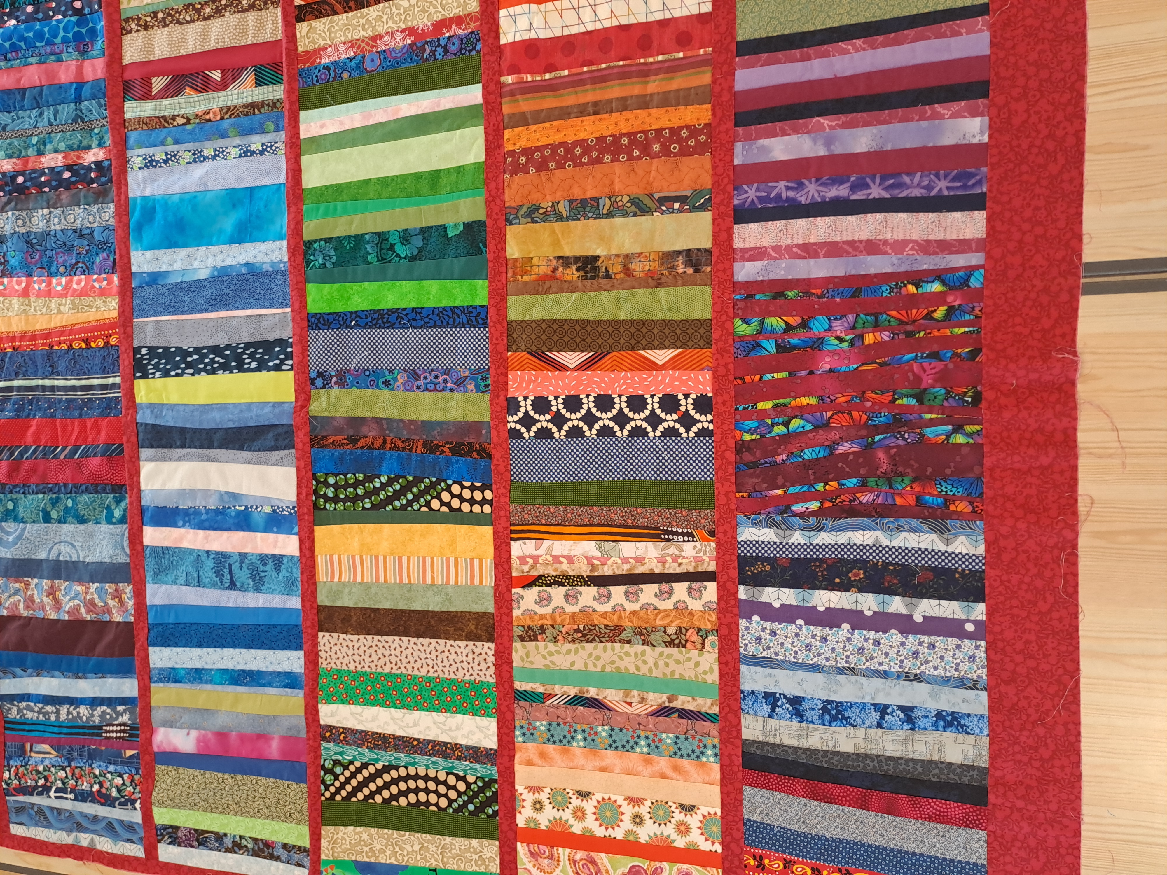 Over the summer they have been doing a project for Quilts for Carers, where they send quilts out to a centre who then finish the quilting and give the quilts to young people who have been carers. They also made bags for them to put the quilts in. The 'scrappy' quilts turned out really well. They used up all their odd pieces and the end result was wonderful.