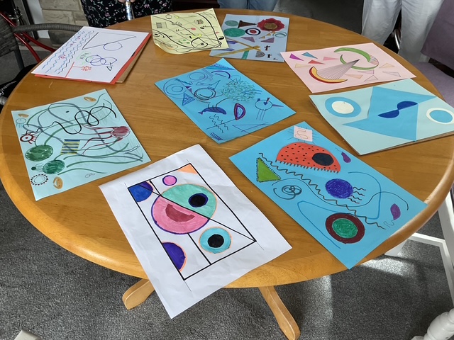 The group had looked at an artist called Kandinski during the year and before the summer break thought it would be fun to have a practical session and challenge themselves to produce their own "Kandinski" followed by a picnic lunch together.