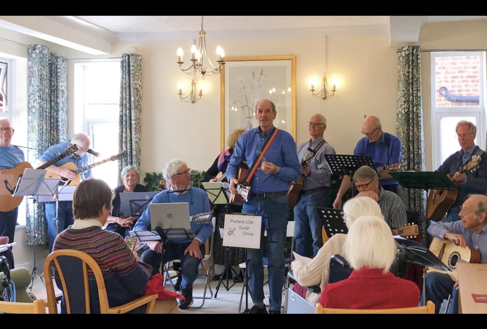Our emphasis is on fun and learning. If you are interested in picking up your guitar again, or would like to start playing the guitar, you would be very welcome, please contact Paul on guitar@purbecku3a.org.uk
